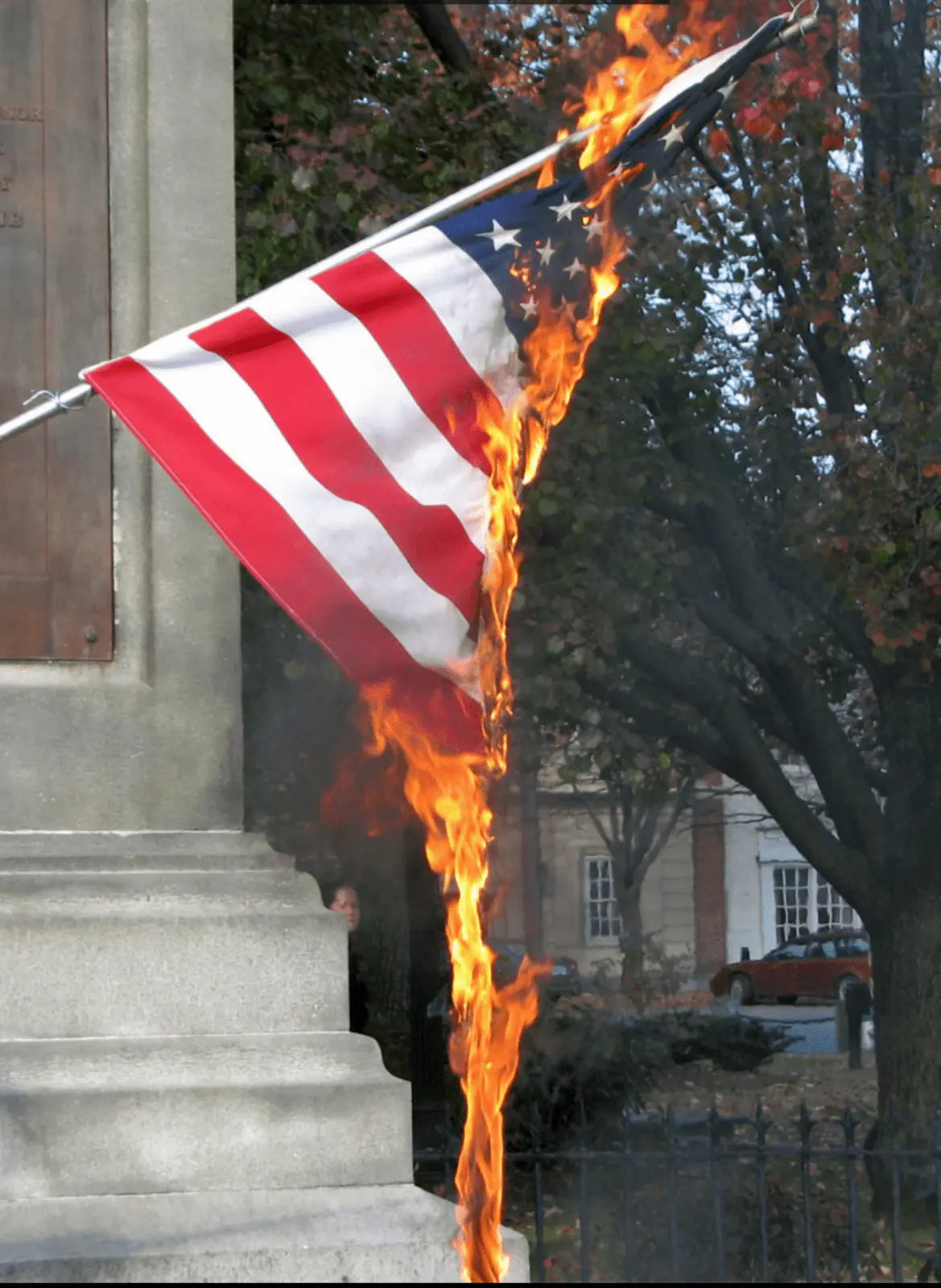 Security video shows a woman approaching a Manhattan restaurant and setting its rainbow pride flag on fire with what appears to be a cigarette lighter.