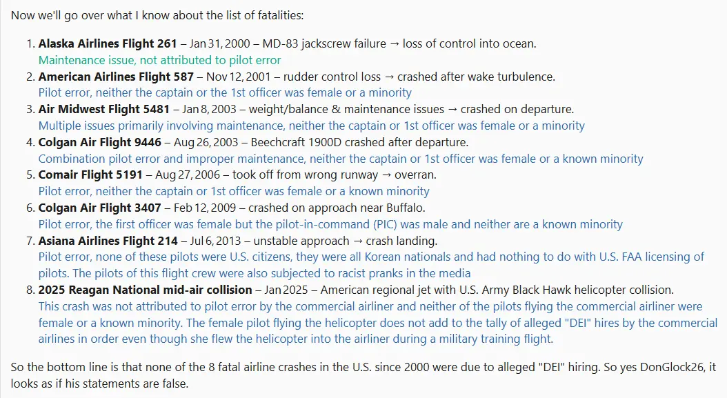Commercial means both cargo & passenger and your article addresses passenger flights only in the very first line of the article. The fact that Huff then brings in a cargo flight presumably after he realized that there were no commercial passenger flights that would make his argument true, doesn't change the dynamics. Both of you are WRONG in your claim that 10% of the pilots working for the airlines are responsible for 50% of the fatal plane crashes.