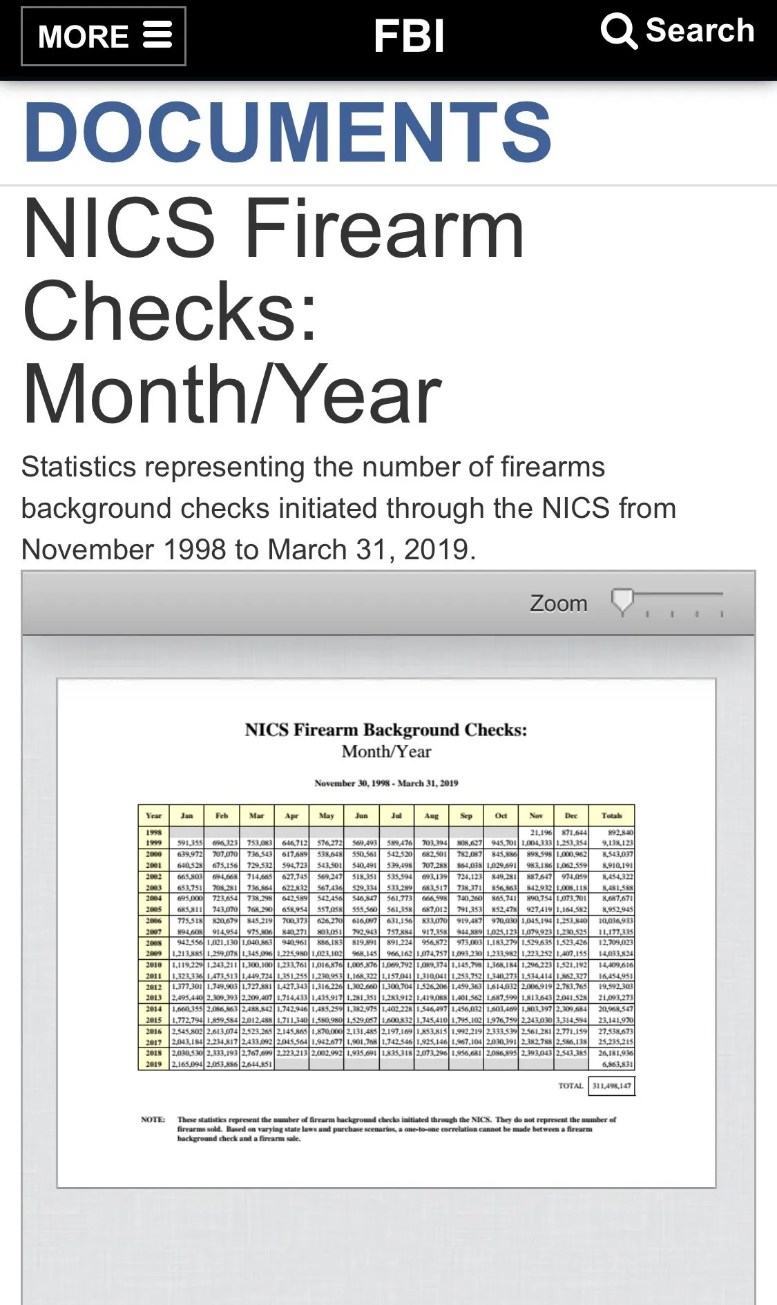 U.S. Incarceration Falls to 20-Year Low; States locking up fewer black offenders, more violent offenders. What is up you ask? NICS Firearm Checks: Month/Year — FBI