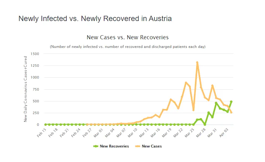 The below graph again show March 26 as the Peak, you then see that New Cases going down and New Recoveries going up:
