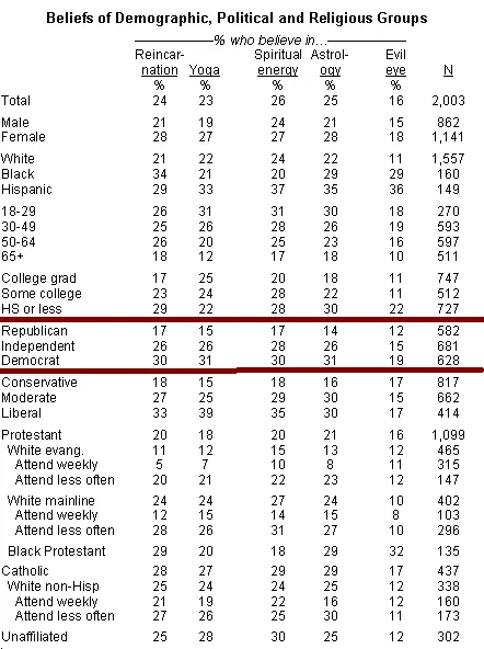 Reincarnation : 30% Democrats vs. 17% Republicans