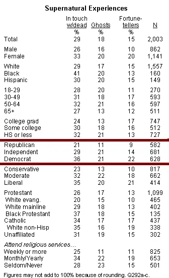 In touch with dead: 36% Democrats vs. 21% Republicans