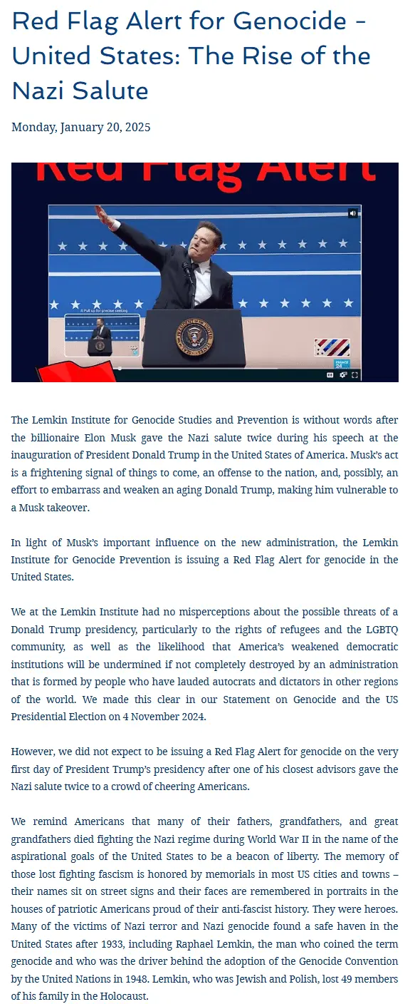 Or it wasn't a salute at all. That means the very least is there's nothing here over which to be outraged.At the very least Musk showed bad judgement with that salute and at worst wanted to get a reaction.