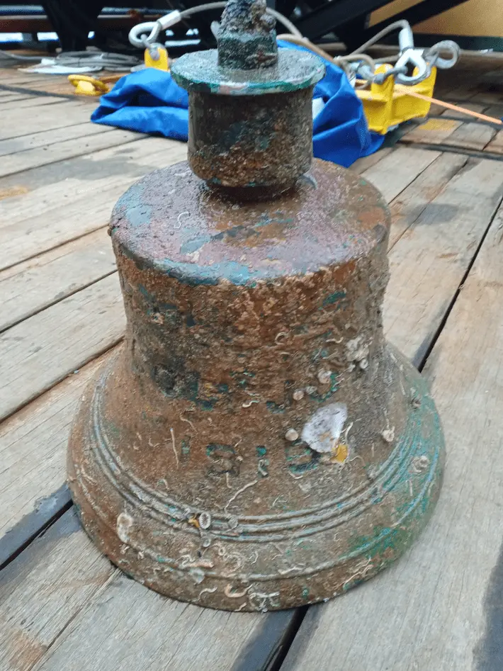 British divers retrieved an 80-pound brass bell from the only American destroyer sunk in World War I more than 100 years after the ship was torpedoed
