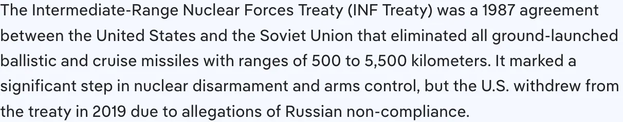 In fact, it were Americans who openly violated it, by making armed UAVs like Reapers and Predators. They said, that Predators and Reapers are not GLCMs, because.... F#ck you, thats why.Thanks. We said Russians cheated.