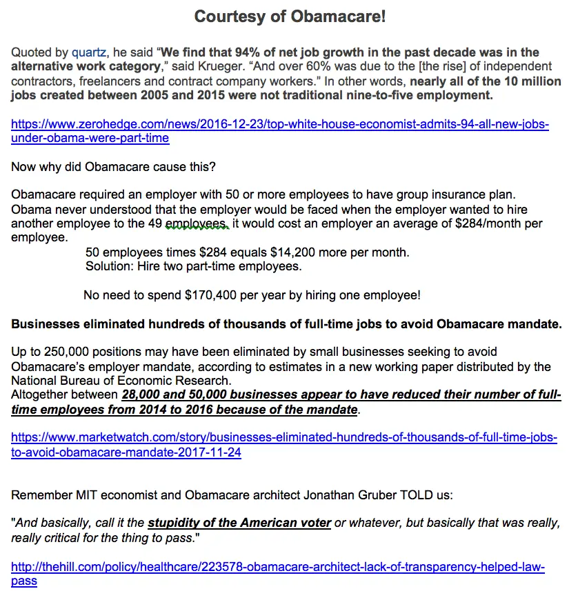 And then the OTHER monstrosity of Obamacare that totally discouraged economic growth!