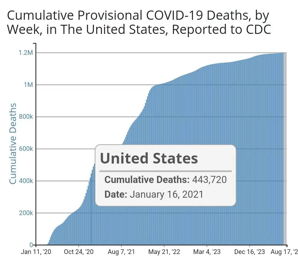 During Trump's 11 months, there were about 443,720 covid related deaths, about