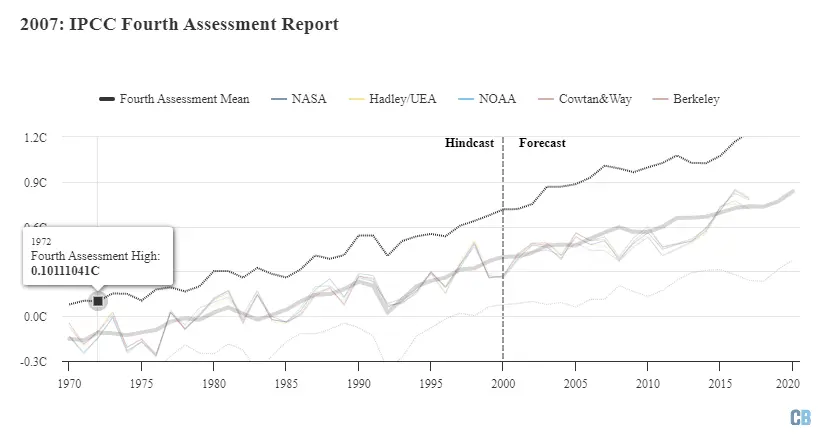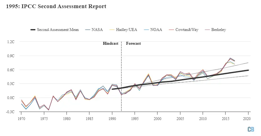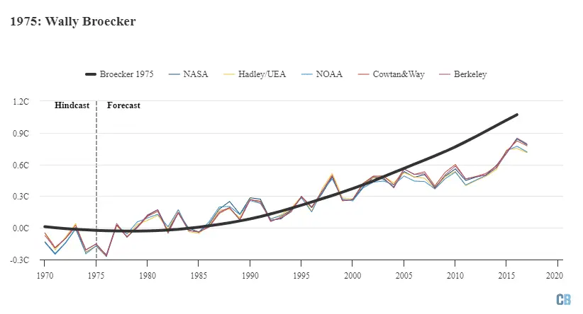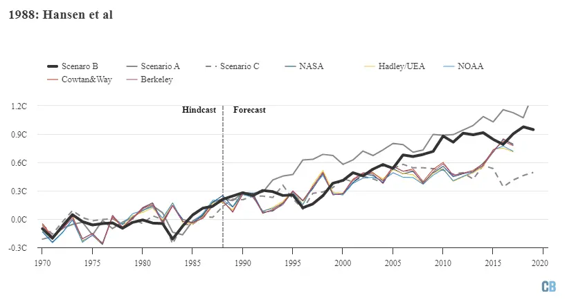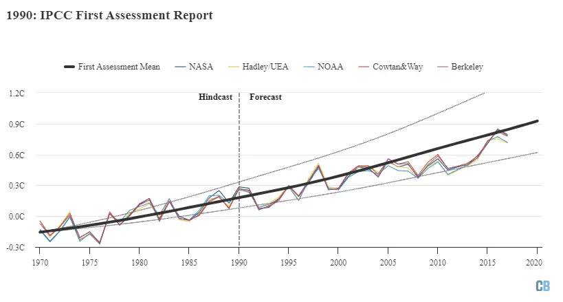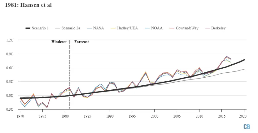 Climate models published since 1973 have generally been quite skillful in projecting future warming. While some were too low and some too high, they all show outcomes reasonably close to what has actually occurred, especially when discrepancies between predicted and actual CO2 concentrations and other climate forcings are taken into account.