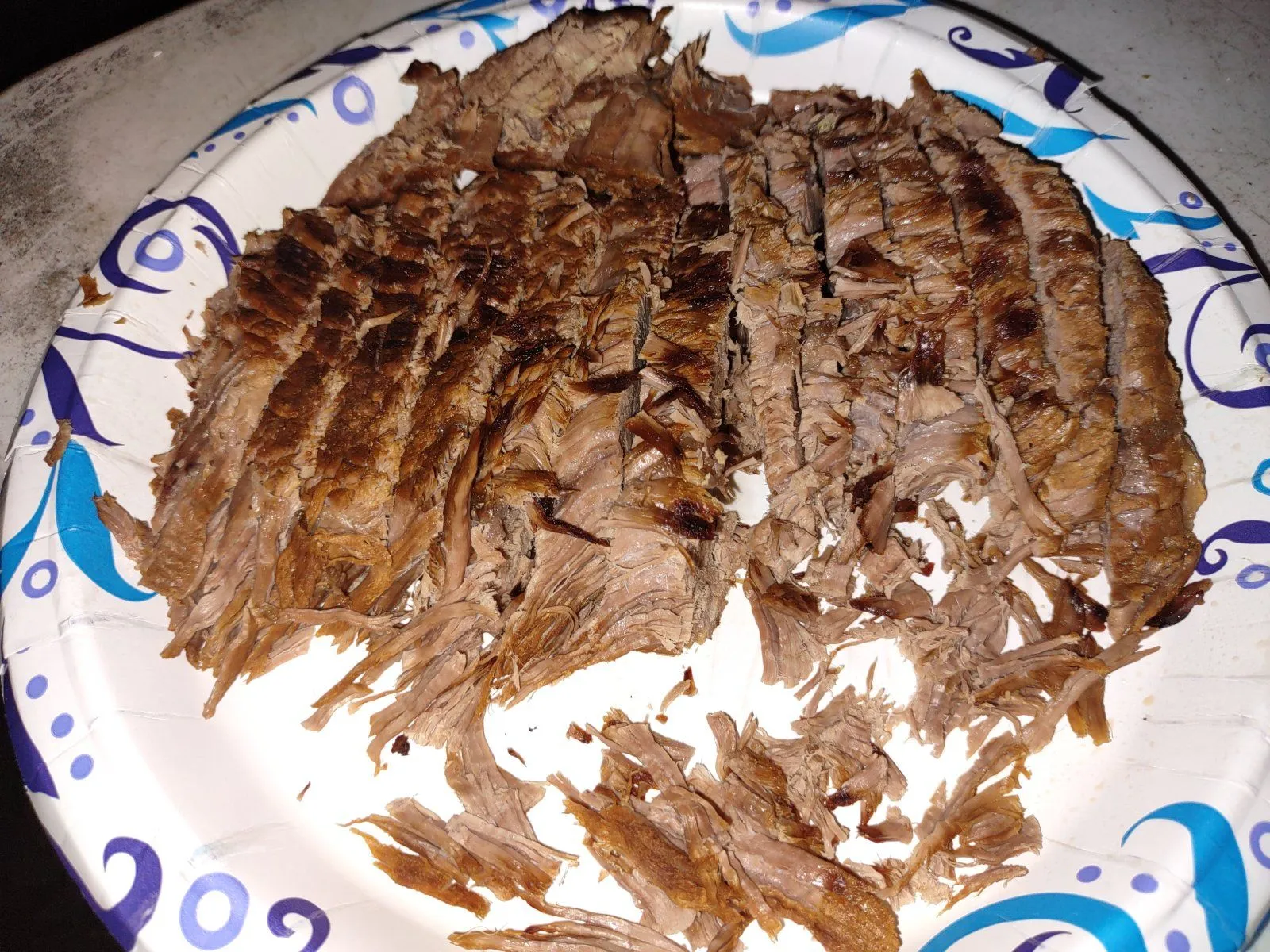You know how a slice of brisket you pull the sides apart and it opens up like Chinese finger trap? That's exactly what you'll get here.