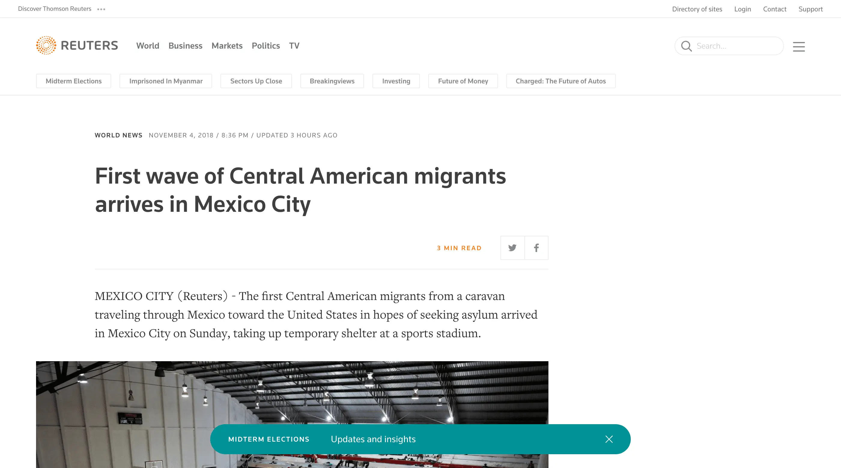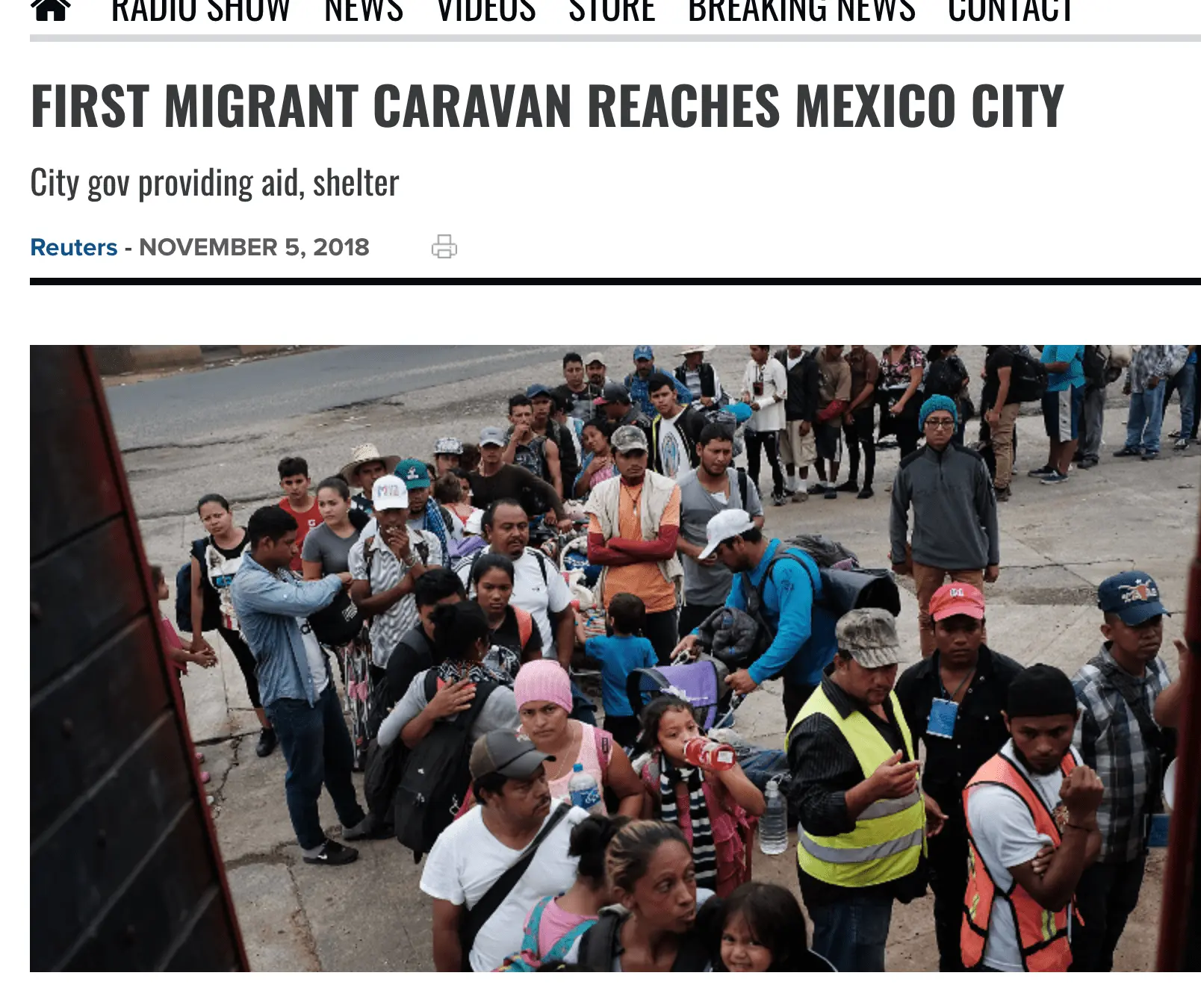 The first Central American migrants from a caravan traveling through Mexico toward the United States in hopes of seeking asylum arrived in Mexico City on Sunday, taking up temporary shelter at a sports stadium.