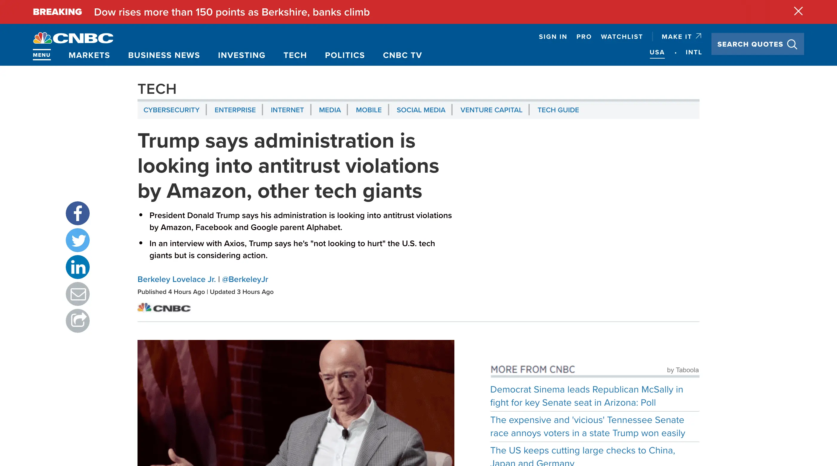 “We are looking at [antitrust] very seriously,” Trump said. “Look, that doesn’t mean we’re doing it, but we’re certainly looking and I think most people surmise that, I would imagine.”