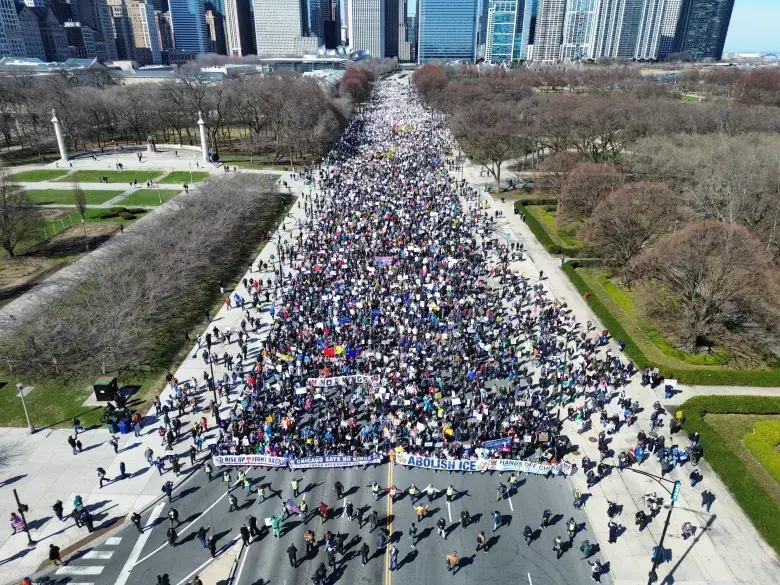 We chant with the crowd.